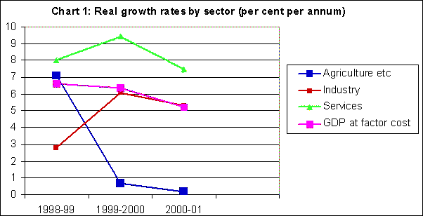 Chart 1 describes the growth rates (in real terms) of the major sectors in